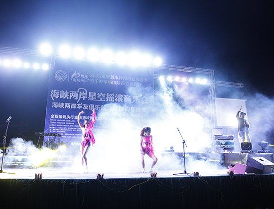 (記者余歡 文/圖)8月15日晚上,2015海峽兩岸車友俱樂(lè)部10周年慶典暨星空搖滾音樂(lè)會(huì)在千野草場(chǎng)激情上演,來(lái)自海峽兩岸車友俱樂(lè)部的500余名車友和前來(lái)千野草場(chǎng)的上萬(wàn)游客在這里激情狂歡,共同慶祝海峽兩岸車友俱樂(lè)部10歲生日。