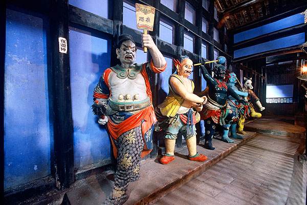 鬼城景區(qū)內,“夜游神巡夜”塑像栩栩如生。