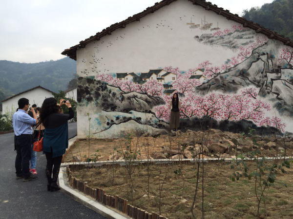 自2013年省旅游局啟動快樂鄉(xiāng)村游活動以來,內(nèi)容更豐富了,開始是以花為媒,推薦鄉(xiāng)村賞花觀葉的線路,現(xiàn)在還是以花為媒,把鄉(xiāng)村最美的的旅游元素——花(葉)畫在墻上。搭配宣傳鄉(xiāng)村美食,更有吸引力。麻城龜峰山書記洪俊波表示,龜峰山的旅游口號是“人間四月天,麻城看杜鵑”,其實龜峰山四季都值得游覽,即使不在花期,來爬爬山,吃吃吊鍋,品品墻繪,都是享受。羅田徐鳳沖村的村長說,“來我們村畫畫都是幾個年輕人,剛好畫的時候下了幾乎一個月的雨,村民們自發(fā)組織到山上砍毛竹做腳手架,為畫高層的墻繪提供幫助,熱情地招呼畫師到自己家吃住。這樣的好事我們村求之不得啊。”