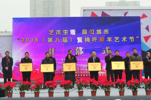2015 年12月31日上午,2016(第八屆)黃桷坪新年藝術(shù)節(jié)在四川美術(shù)學(xué)院黃桷坪校區(qū)運(yùn)動場盛大開幕,重慶市旅游局局長劉旗,重慶市文化委副主任雷平,四川美院黨委書記黃政、院長龐茂琨,九龍坡區(qū)委書記丁洪,九龍坡區(qū)委副書記、區(qū)政府區(qū)長石繼東,九龍坡區(qū)人大主任潘平,九龍坡區(qū)政協(xié)主席鄭和平,九龍坡區(qū)委常委、副區(qū)長劉小強(qiáng),九龍坡區(qū)委常委、宣傳部長王南,九龍坡區(qū)委常委、區(qū)委辦公室主任顏朝華,九龍坡區(qū)人大副主任曾熔,九龍坡區(qū)政府副區(qū)長戎蓉,九龍坡區(qū)政協(xié)副主席孫夢等領(lǐng)導(dǎo)和嘉賓出席了開幕式。開幕式由四川美院黨委副書記左益主持。